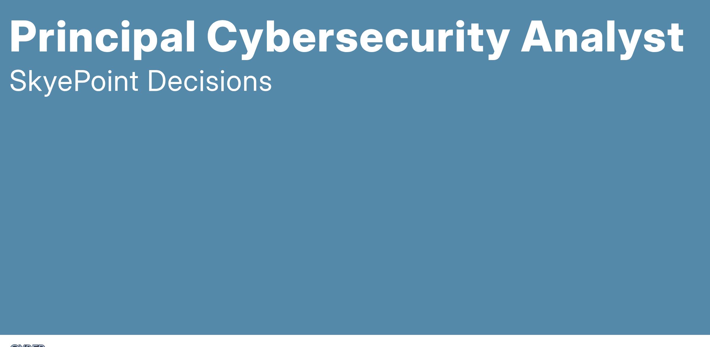 Skyepoint Decisions is seeking a Principal Cybersecurity Analyst to support the Department of State (DOS) Diplomatic Security Cyber Mission (DSCM) program. The DSCM program encompasses technical, engineering, data analytics, cyber security, management, operational, logistical and administrative support to aid and advise DOS Cyber & Technology Security (CTS) Directorate. This includes protecting a global cyber infrastructure comprising networks, systems, information, and mobile devices all while identifying and responding to cyber risks and threats. Those supporting the DSCM program strive to leverage their expert knowledge and propose creative solutions to real-world cybersecurity challenges.