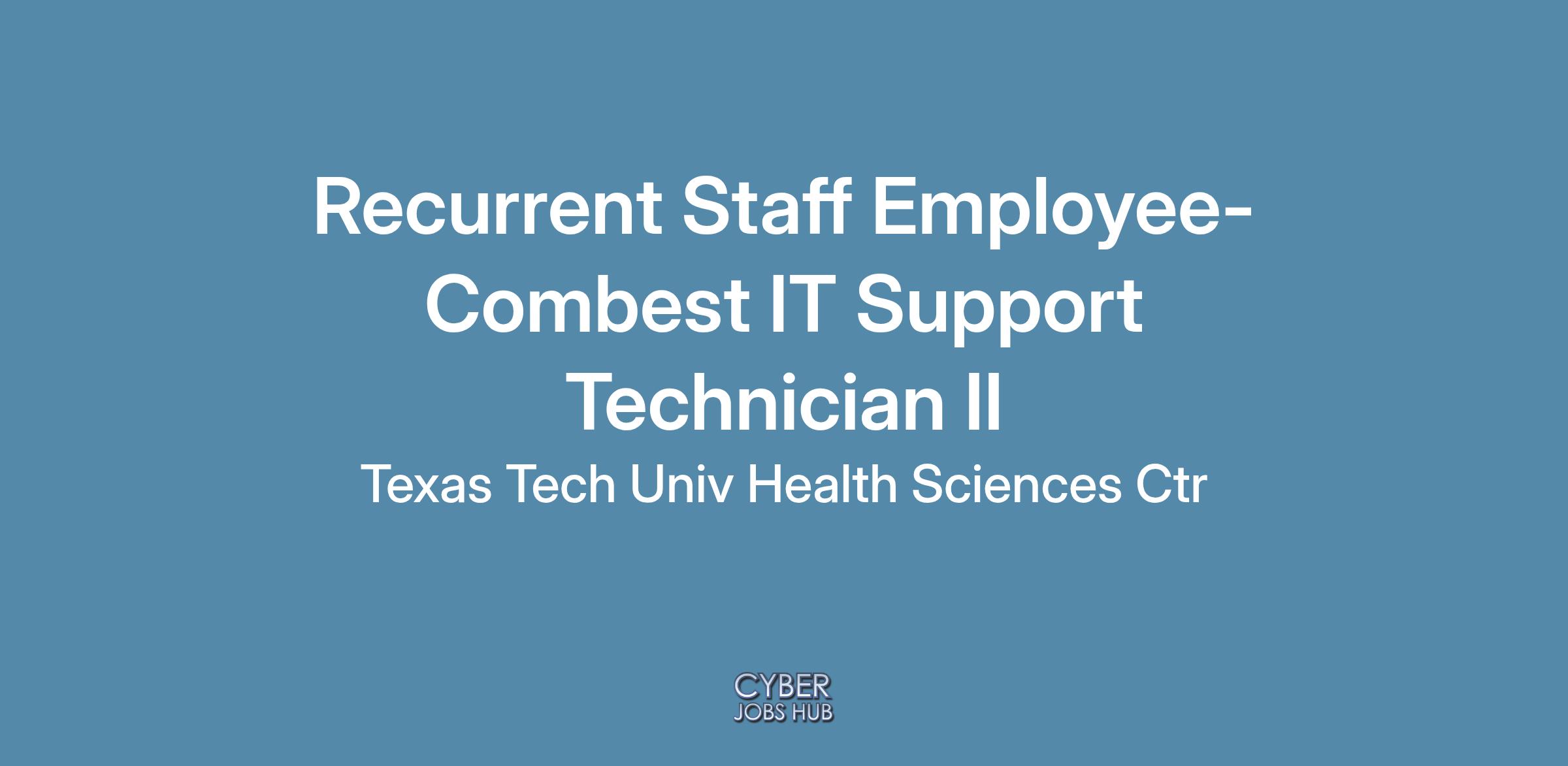 Job DescriptionThis PRN IT position supports the TTUHSC SON Combest clinics and programs with IT needs. Duties consist of identifying,ย diagnosing, and resolving technologyย issues for users of computer softwareย and hardware. Able to provideย technology support in a call centerย environment and communicate clearย solutions to end-users.