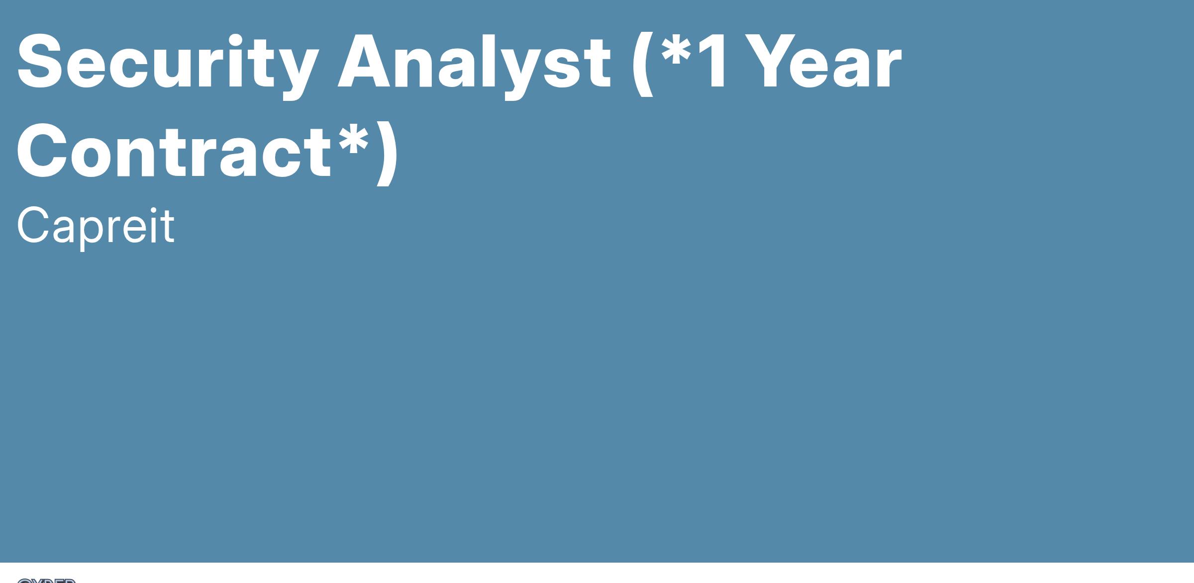 Title: Security Analyst (*1 Year Contract*)