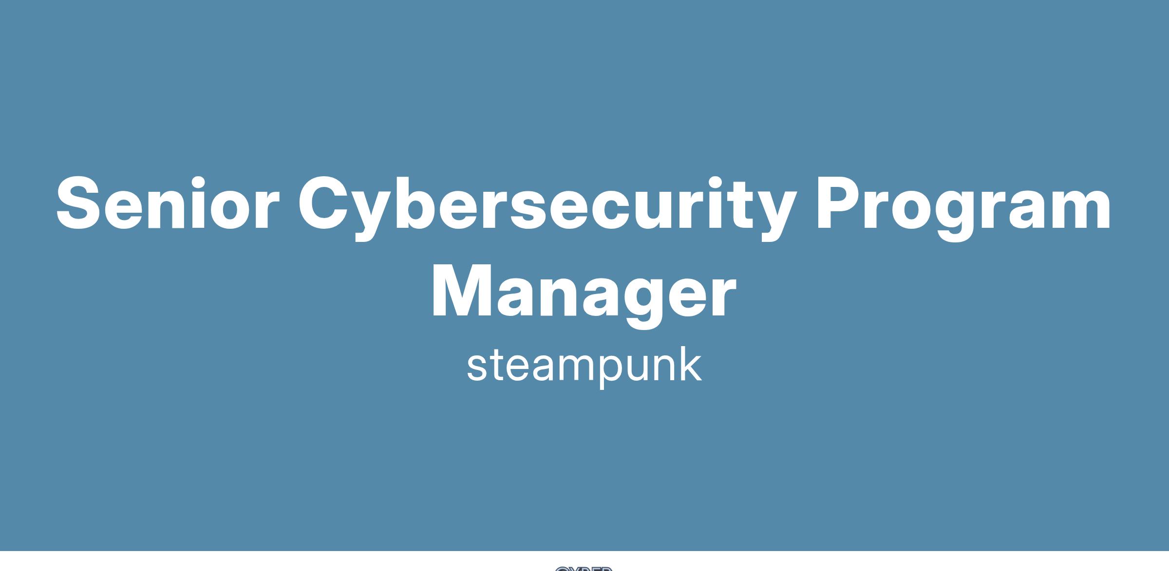 Steampunk is seeking a Senior Cybersecurity Program Manager to support our Department of Homeland Security (DHS), Cybersecurity and Infrastructure Security Agency (CISA) clients. CISA leads the national effort to understand, manage, and reduce risk to critical infrastructure. CISA is charged with leading the Nation's strategic and unified work to assure the security and resilience of the nation's cyber systems, protecting the American way of life.