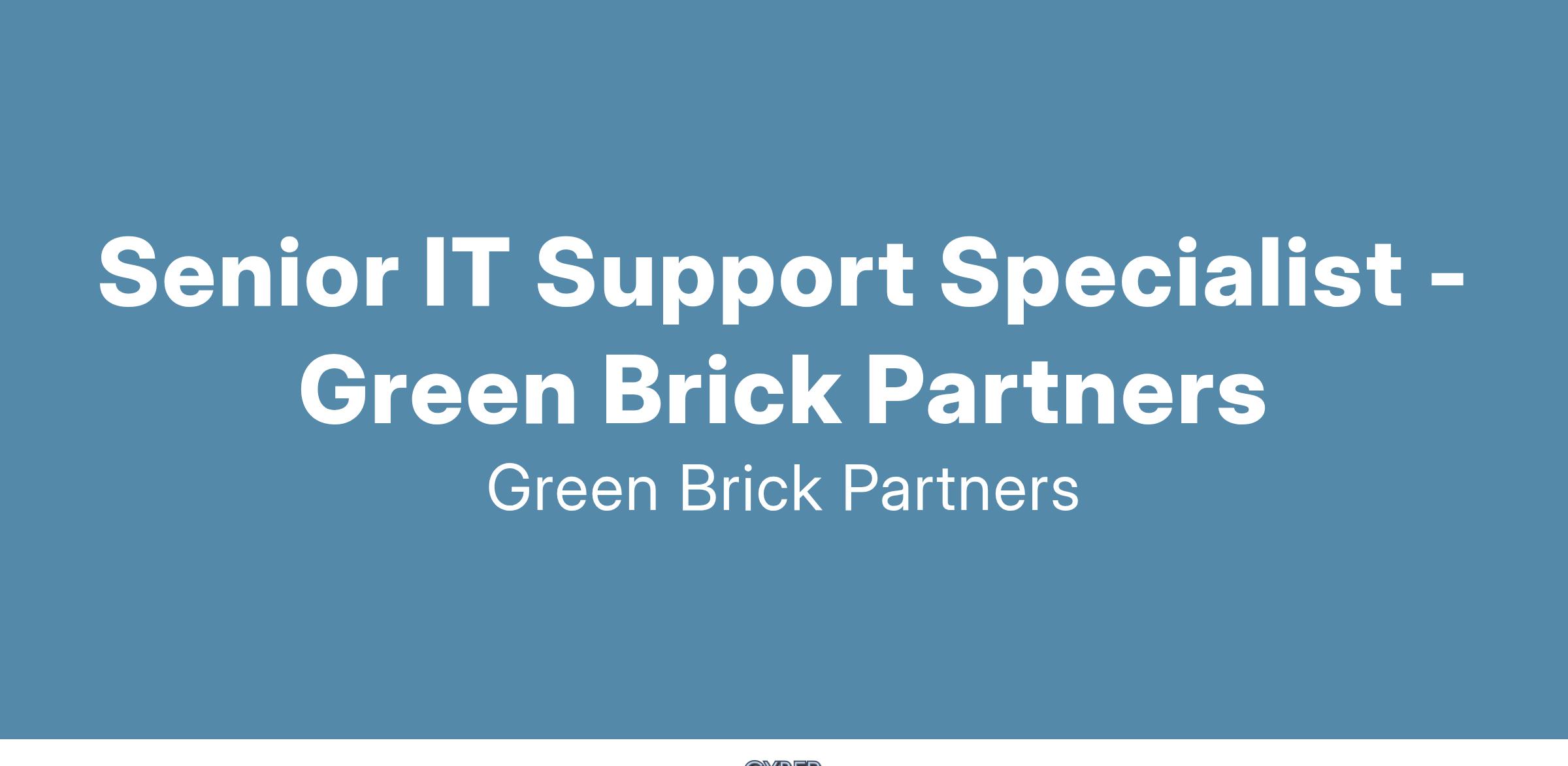 Position Purpose: The Senior IT Support Specialist must believe in, practice and initiate all Green Brick Partners values set forth in an acronym we call HOME. They must be Honest, Objective, Mature and Efficient in how he or she approaches their role at Green Brick Partners.