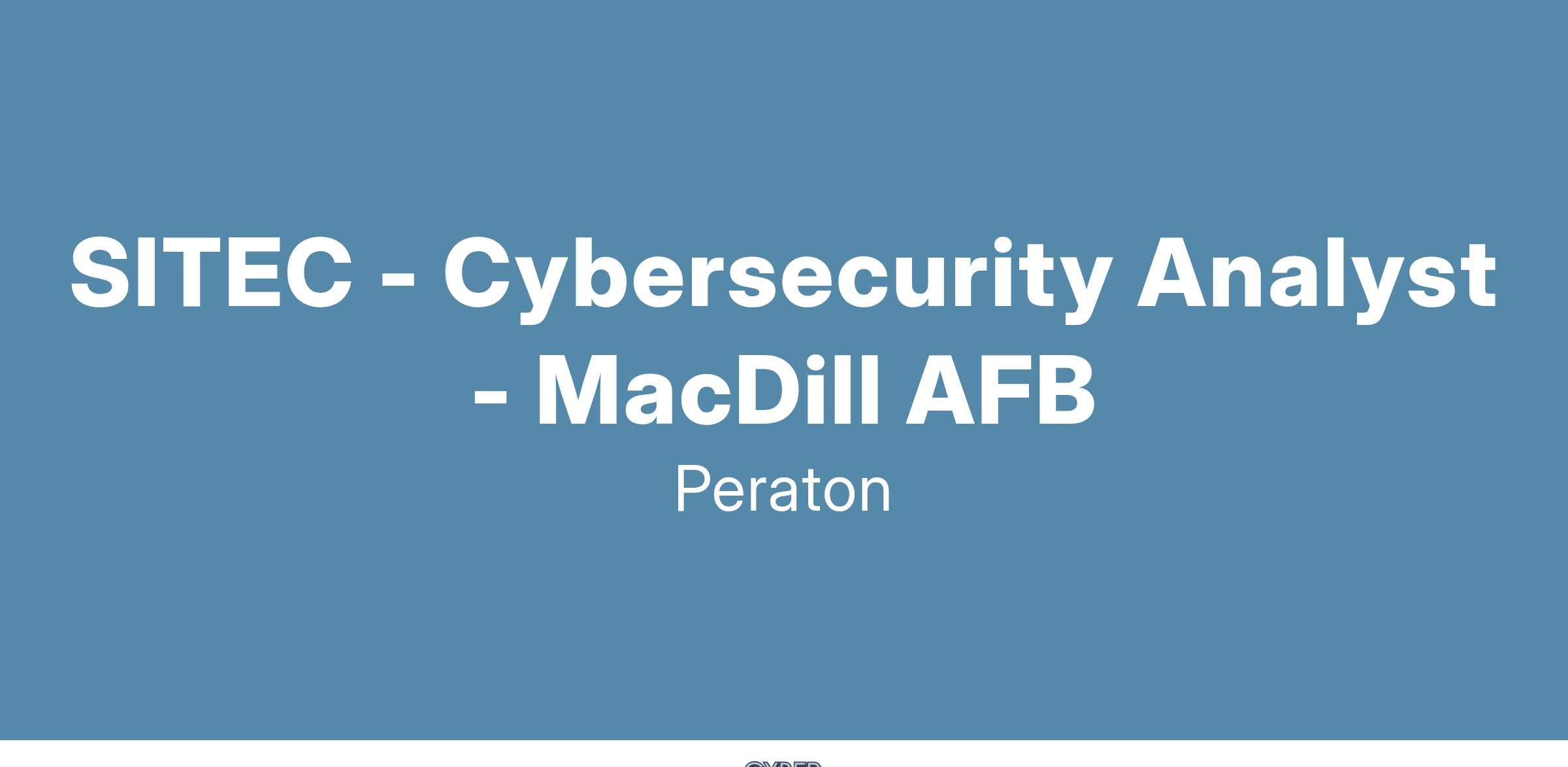 Peraton requires a Cyber Security Analyst (JNY) to support the Special Operation Command Information Technology Enterprise Contract (SITEC) – 3. Positions are located at the SOCOM Headquarters at MacDill, AFB FL, and at the TSOC and Component locations in the United States and abroad.