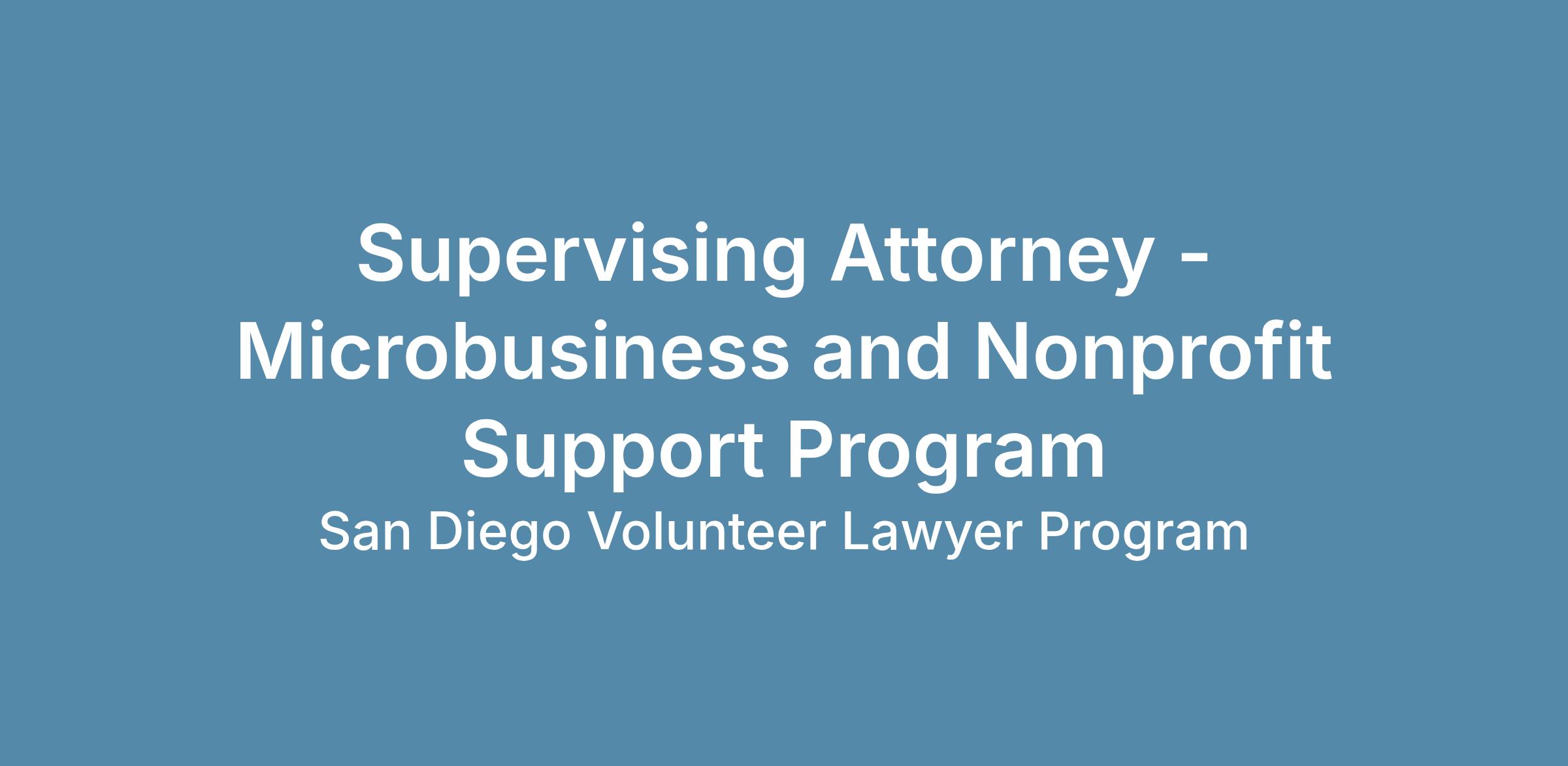 - Supervising SDVLP’s Microbusiness and Nonprofit Support Program to ensure the delivery of high-quality, pro bono legal services to nonprofit organizations and microbusinesses