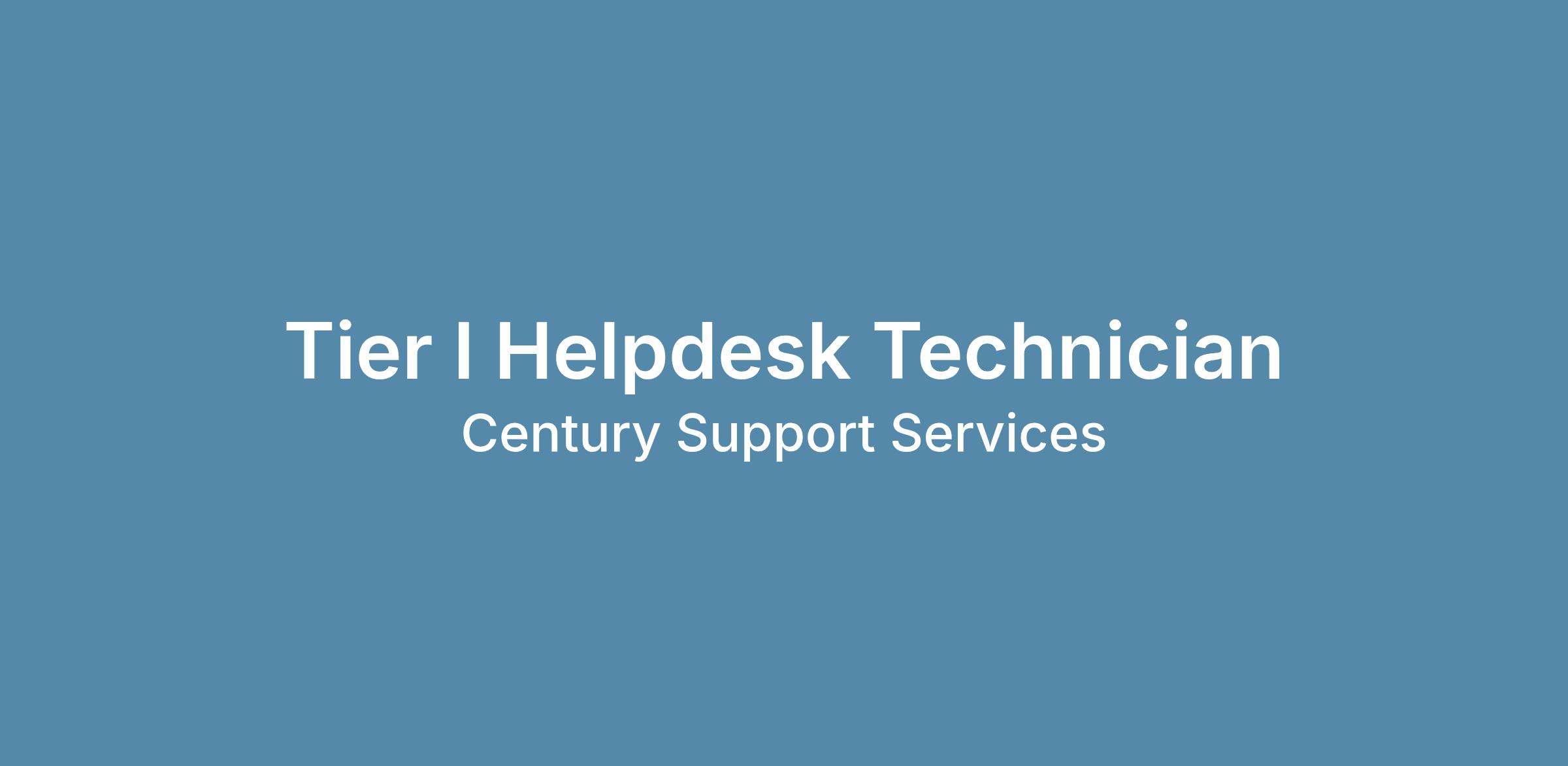 Century is seeking a Tier I Help Desk Technician to provide first line technical support to end users by troubleshooting common hardware, software, and access issues. This role focuses on excellent customer service, accurate ticket handling, and timely resolution or escalation of issues to higher-level support teams.