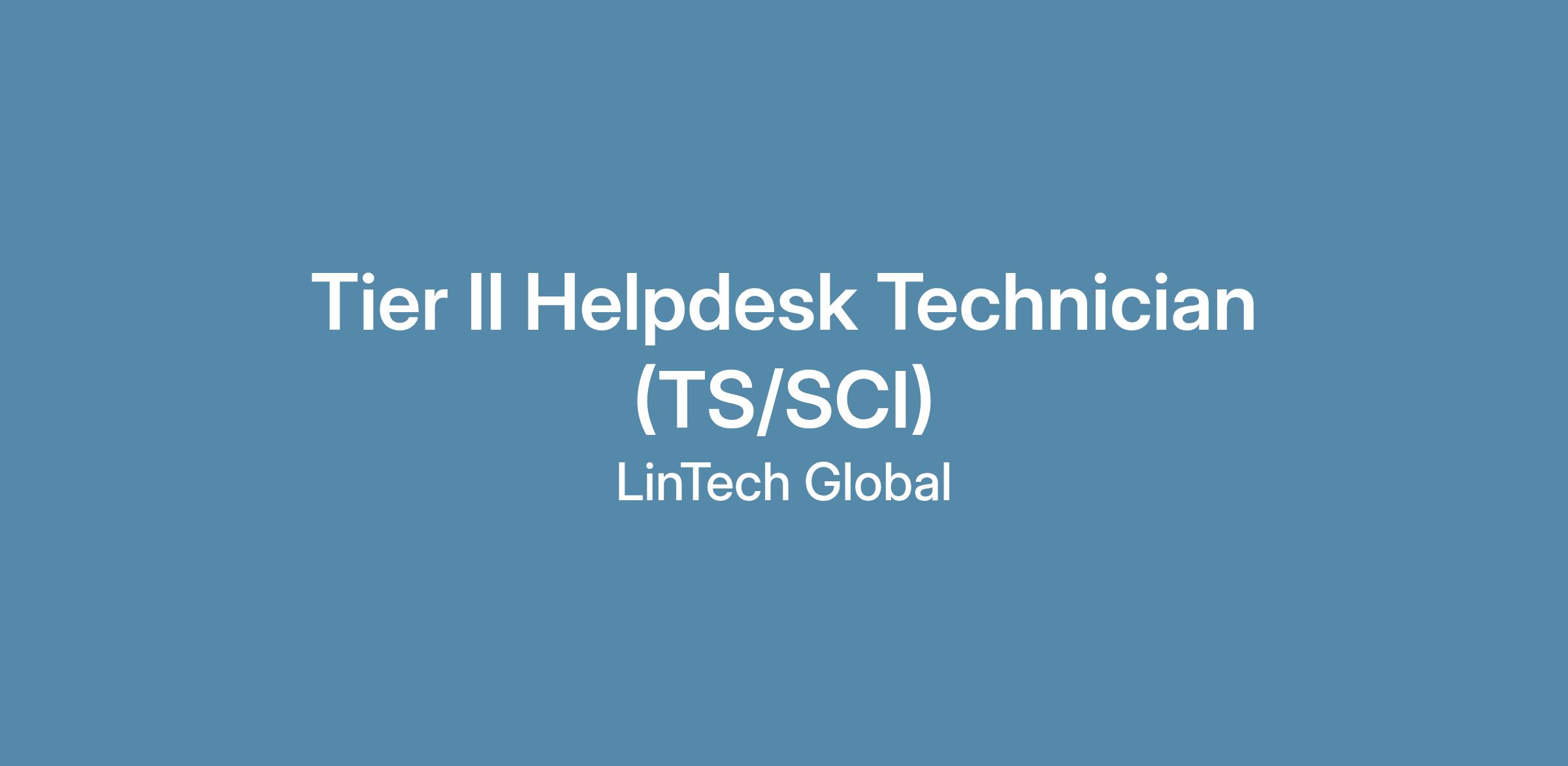 LinTech is looking for a Tier II Helpdesk Technician to provide services to support an Important Government Customer.