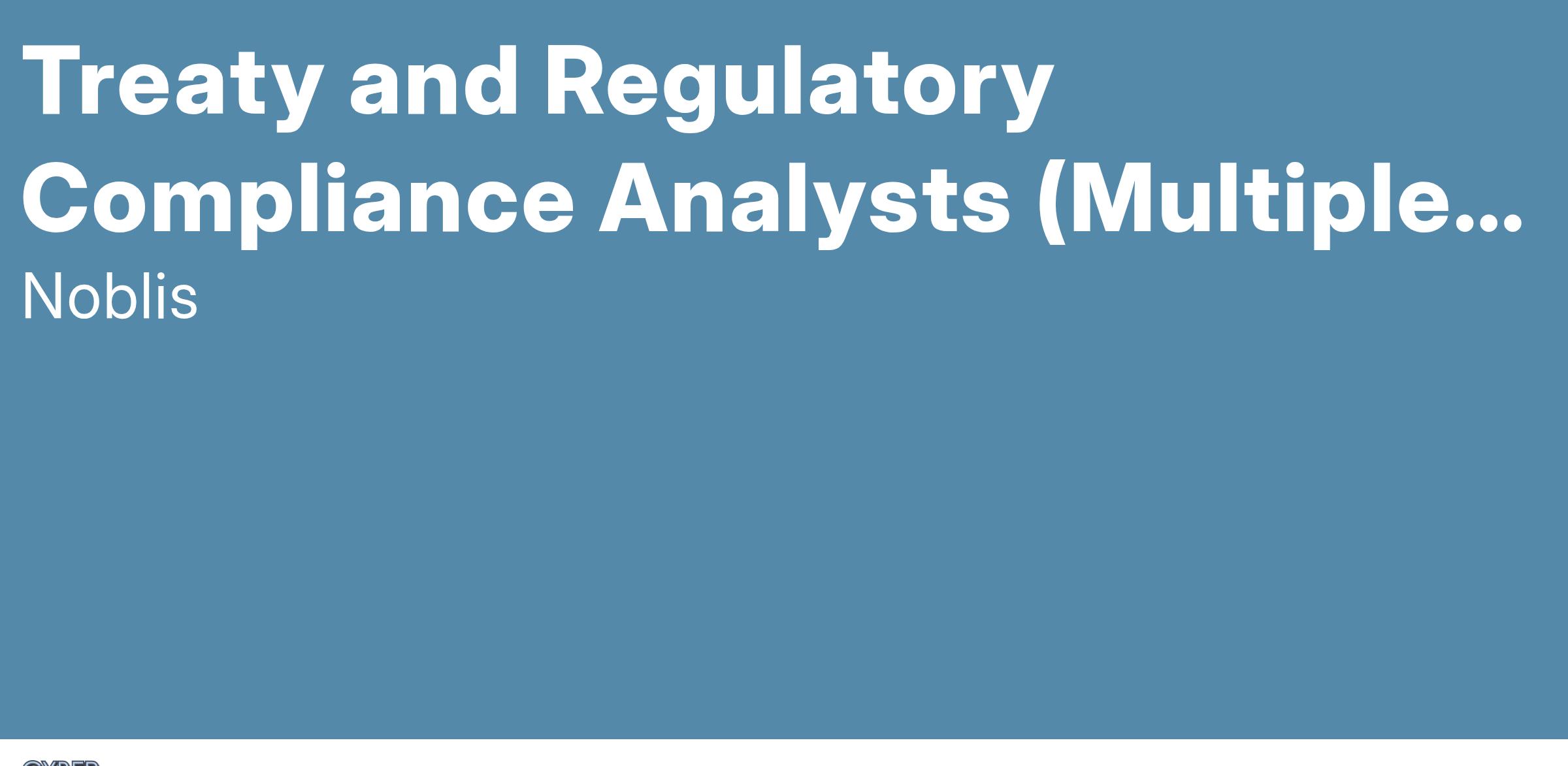 Noblis is seeking Treaty and Regulatory Compliance Analysts at multiple levels to support U.S. government cutting-edge science and technology research and development. Our Analysts assist Federal Program Managers and researchers in complying with applicable treaty, regulatory and policy frameworks, and support our client in representing the agency's interests in interagency and international technology policy discussions. Staff are responsible for facilitating department-wide compliance with applicable arms control agreements, with a particular focus on the Biological Weapons Convention (BWC) and the Chemical Weapons Convention (CWC).